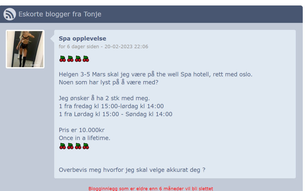 Dette er nok scam. Het Kajaa for et par dager siden. Ny annonse, nye bilder, uten tatoveringer og 1/3 så store bryster. Kan selvfølgelig være at dagens bilder er før hun ble operert og tok tatoveringer…